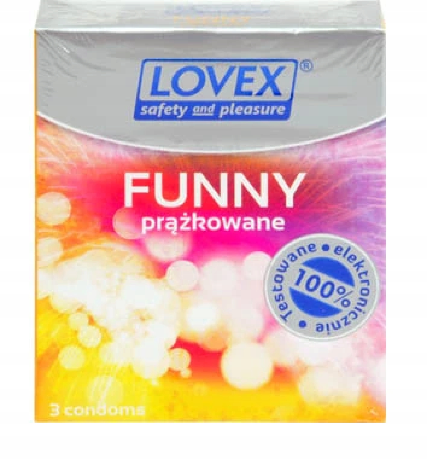смішні презервативи Lovex створені для кращого почуття та задоволення. Вони виготовлені з високоякісної природної гумової латексу з ребристою поверхнею, природним кольором, закінчуються резервуаром і зволожують не -медикучним зволожуючим кремом. Вони використовуються для контрацепції та допомагають зменшити ризик передачі ВІЛ та інших захворювань, що передаються статевим шляхом (STD). Жоден метод контрацепції забезпечує 100% захист.