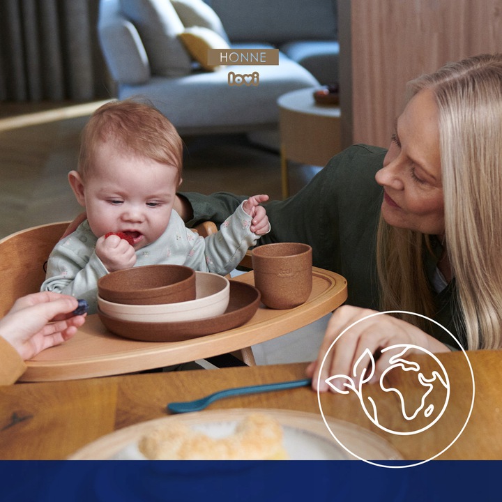 Продукція LOVI легка, зручна, її легко тримати в руках. і мають безпечну круглу форму, тому їх можуть використовувати як батьки, так і діти. Для виготовлення посуду ми використовували 20% переробленого деревного борошна, завдяки чому він містить менше пластику, а головне, посуд не містить меламіну та бісфенолу А.