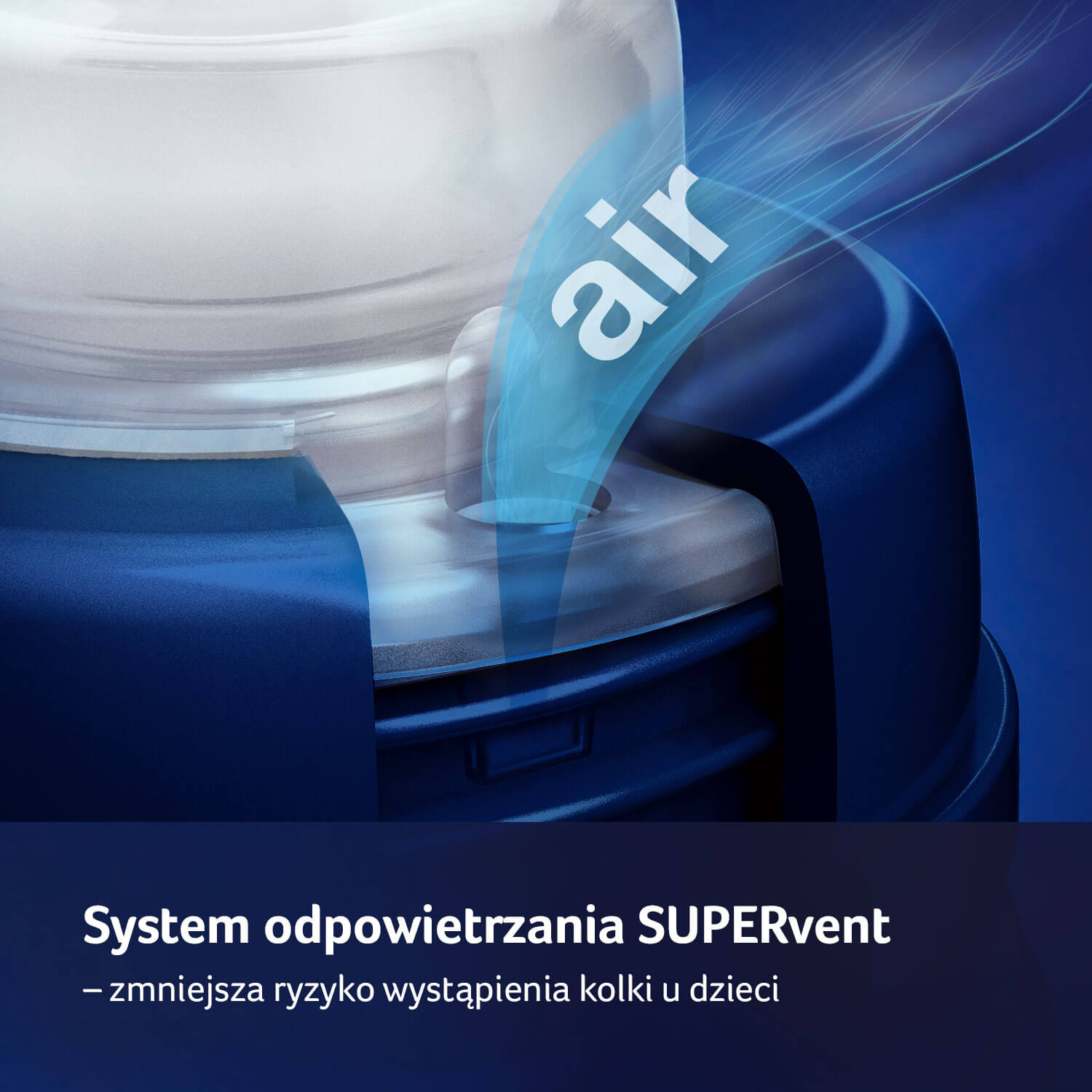 Новий ефективний вентиляційний клапан SUPER усуває змішування їжі та повітря. Це знижує ризик колік у дітей. Клапан використовується в міні- та повільнопроточних ніпелях. Для більших витрат використовується вентиляційна лінза. Перед першим використанням перевірте, чи лінза липка, обережно розтягнувши її між пальцями.
