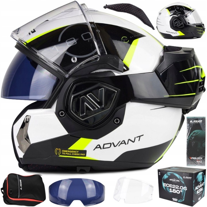 ls2 ff906 Advant -це щелепний шолом, який поєднує вагу ультра -світла з високою стійкістю до проколу. Ця модель має подвійне схвалення P/J ECER 22.06 - що дозволяє керувати автомобілем з відкритою та закритою щелепою. Дизайнери з LS2 помітили велику популярність цього типу шоломів і створили абсолютно новий і унікальний механізм, який дозволяє FF906 Advante бути найменшим, найлегшим шоломом такого роду.