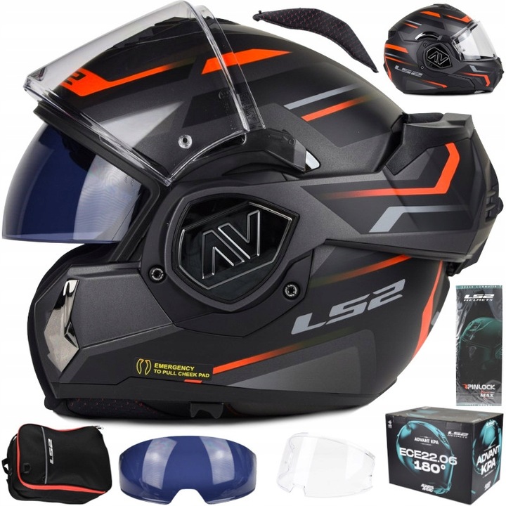 ls2 ff906 Advant -це щелепний шолом, який поєднує вагу ультра -світла з високою стійкістю до проколу. Ця модель має подвійне схвалення P/J ECER 22.06 - що дозволяє керувати автомобілем з відкритою та закритою щелепою. Дизайнери з LS2 помітили велику популярність цього типу шоломів і створили абсолютно новий і унікальний механізм, який дозволяє FF906 Advante бути найменшим, найлегшим шоломом такого роду.
