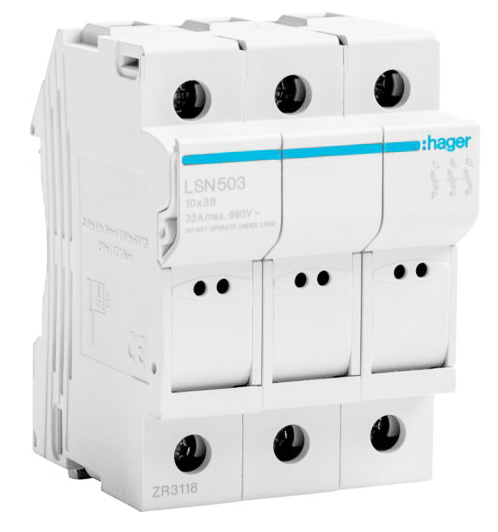 Модульна основа запобіжника 3P плавкий циліндр L38 10x38 мм, 32 A 690 В змінного струму