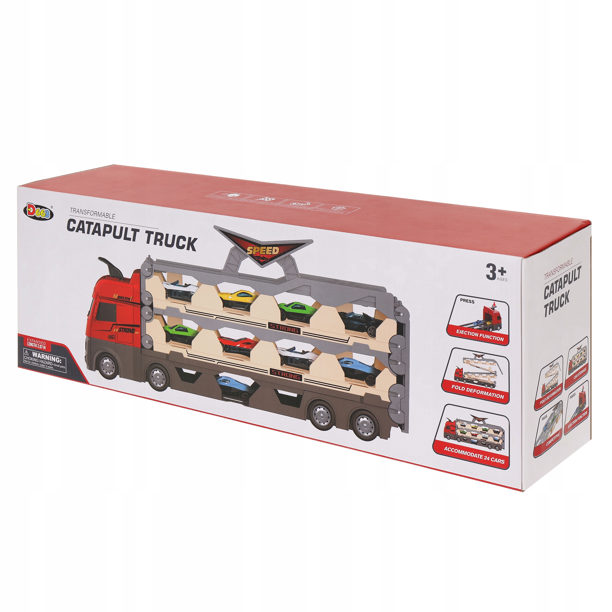 Цей автомобіль - це справжнє частування для кожного маленького автомобільного вентилятора. Класичний вигляд барвистого набору з евакуатором, безумовно, зацікавить вашу дитину та змусить його зацікавити іграшку негайно. Вантажівка має побудований запуск автомобіля. Крім того, напівпричіп на задній частині тира розгортається. Його довжина до 2 метрів!