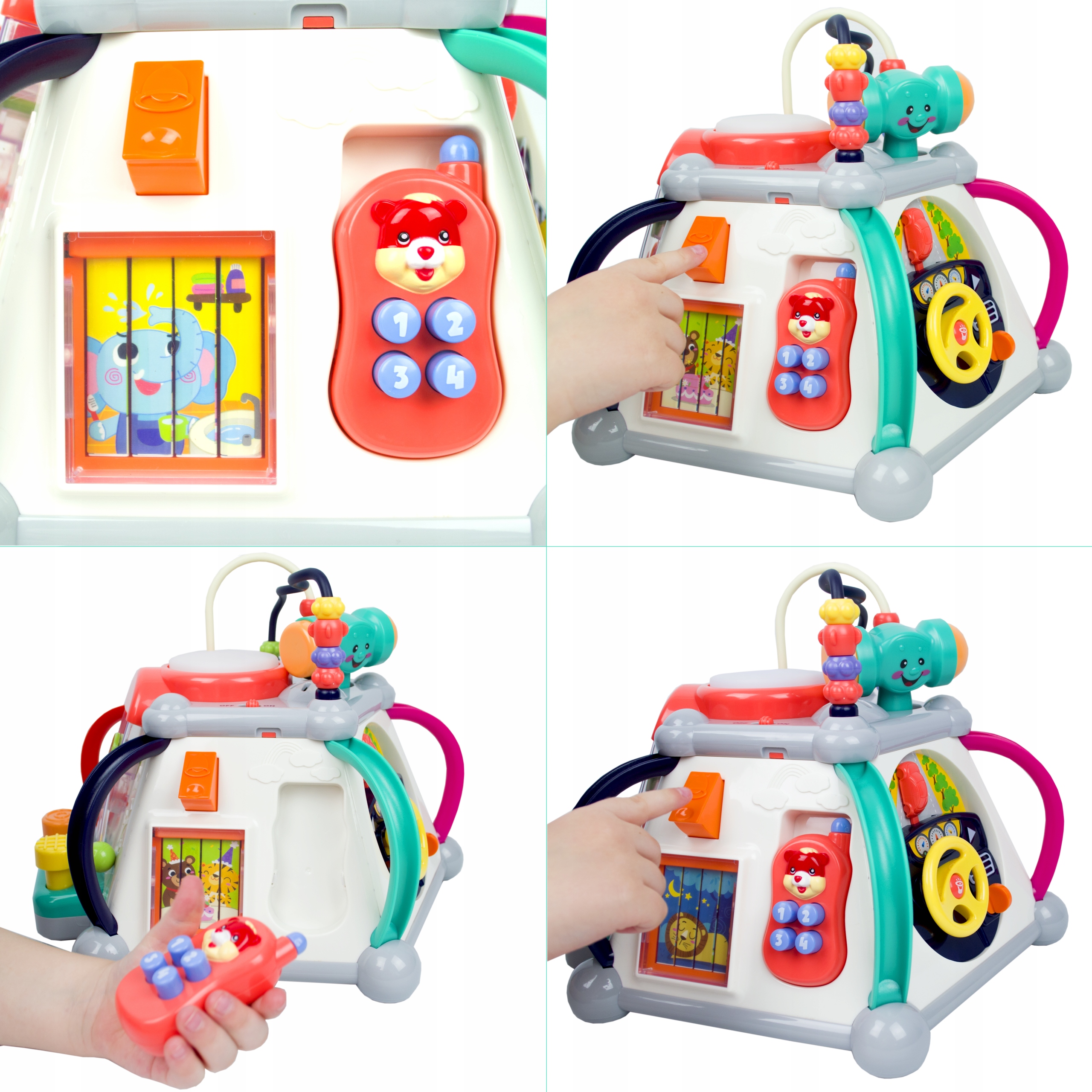 Цей унікальний ігровий центр є запорукою чудових розваг для вашої дитини. Безліч цікавих функцій - чудова можливість розвивати координацію рухів, логічне мислення та уяву. На кожній поверхні куба є цікаві ігрові сцени.