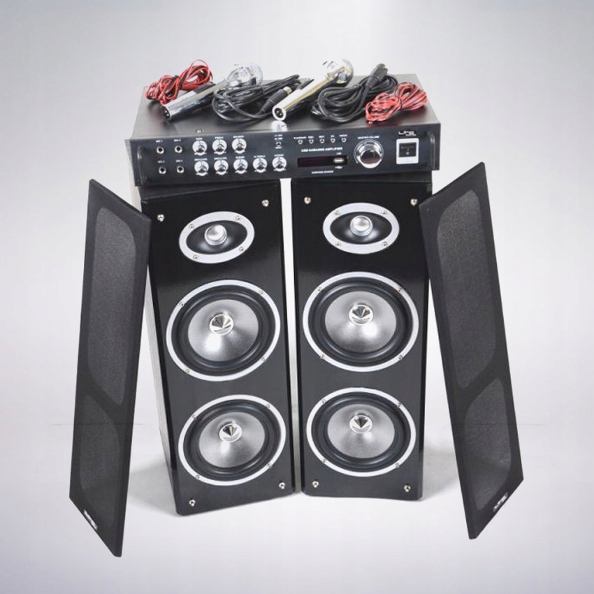 набір караоке, підсилювач, стерео стовпчики, 2 мікрофони, 2x 40 Вт, Bluetooth, USB, AUX, чорний