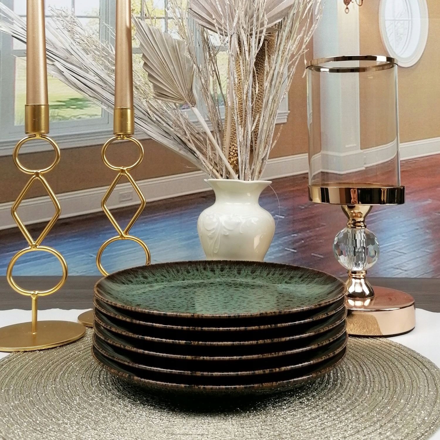 - 12 х пластини (Салатна чаша) 18 см. є характерною особливістю використання технології обробки суден з реактивними глазурами, що робить кожен продукт унікальним та унікальним. Це додаткове значення цих суден. Збратовані елементи завершуються випадковим чином, а відмінності з’являться в наборах.