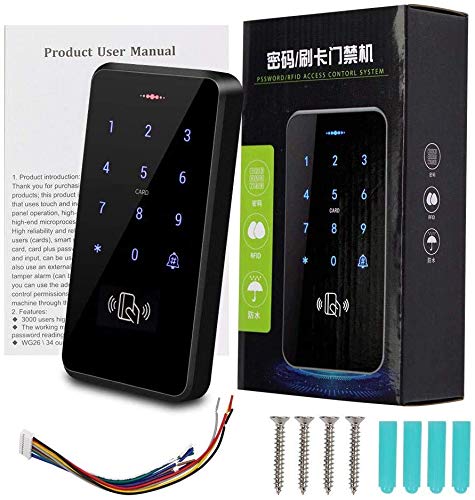 LUCINE Надзвичайно повністю водонепроникна RFID-клавіатура, місткість 3000 користувачів, 125 кГц автономна сенсорна панель для контролю доступу, PIN-код, Wiegand 26, з 10 шт. RFID-брелоків, можна встановити на вулиці