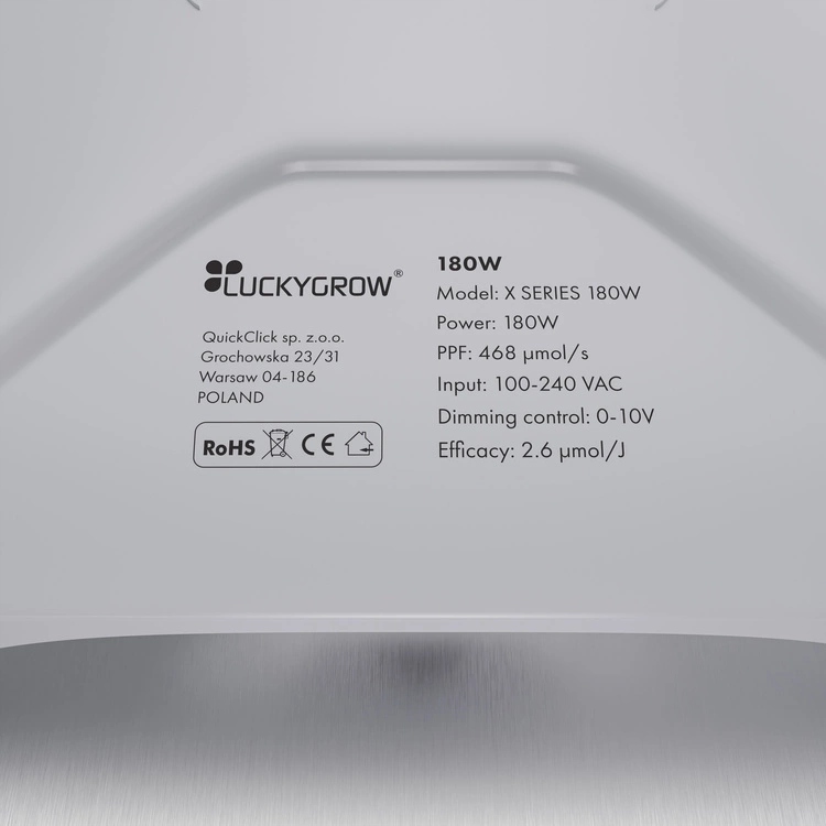 LuckyGrow X-Series 100 Вт 2,6 мкмоль/j -це вдосконалений світлодіодний пристрій, створений спеціально для рослинних культур. Завдяки використанню сучасних технологій та оптимізованому привидному фотосинтетично активному світлу (PAR) пристрій гарантує ефективність та ефективність у кожному етапі росту рослин. Специфікація