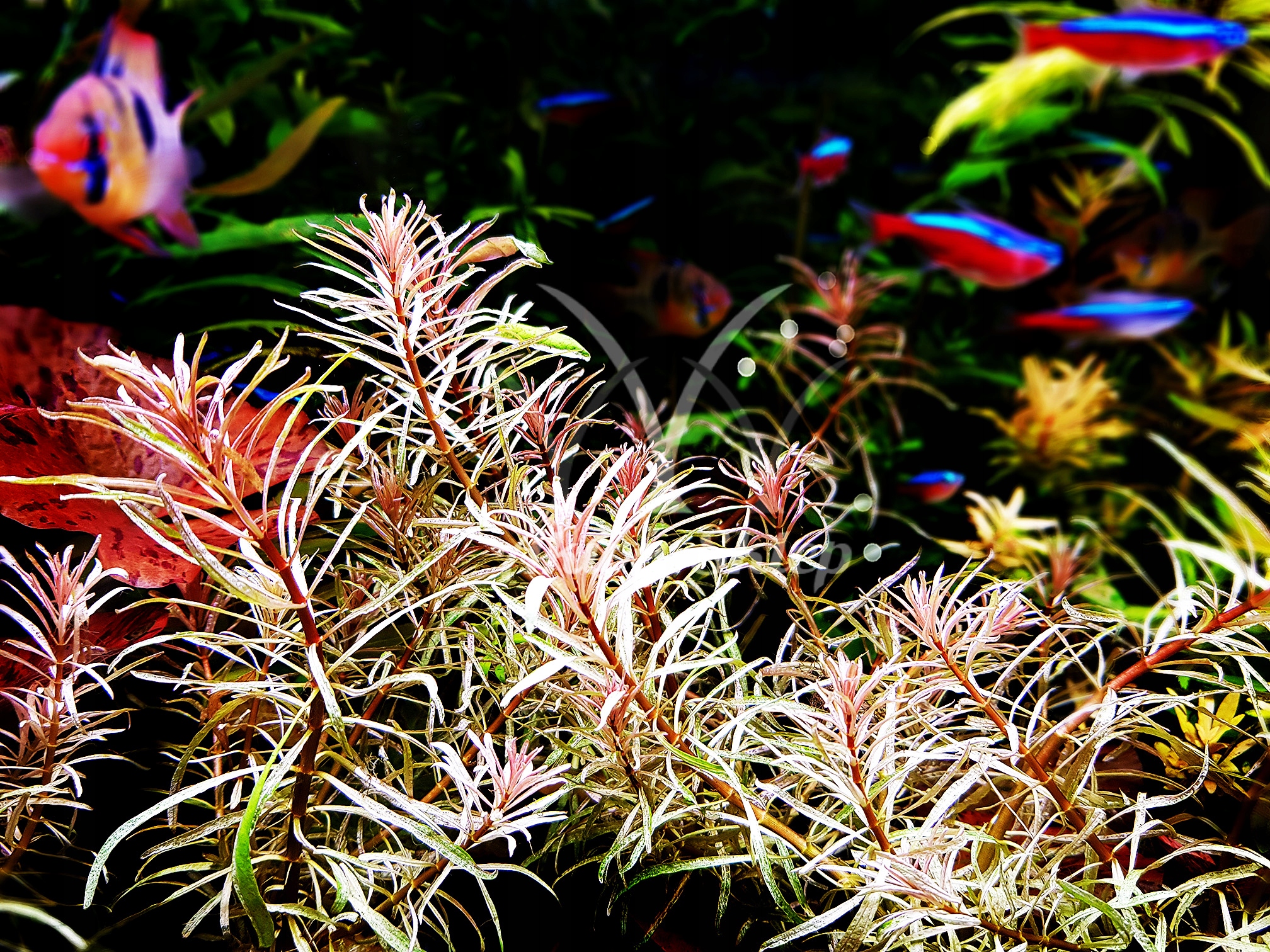 Сіянці походять із селекційної селекції. Нижче в одному з моїх акваріумів кілька сортів Людвігії:) Рубін, Куба, Біла