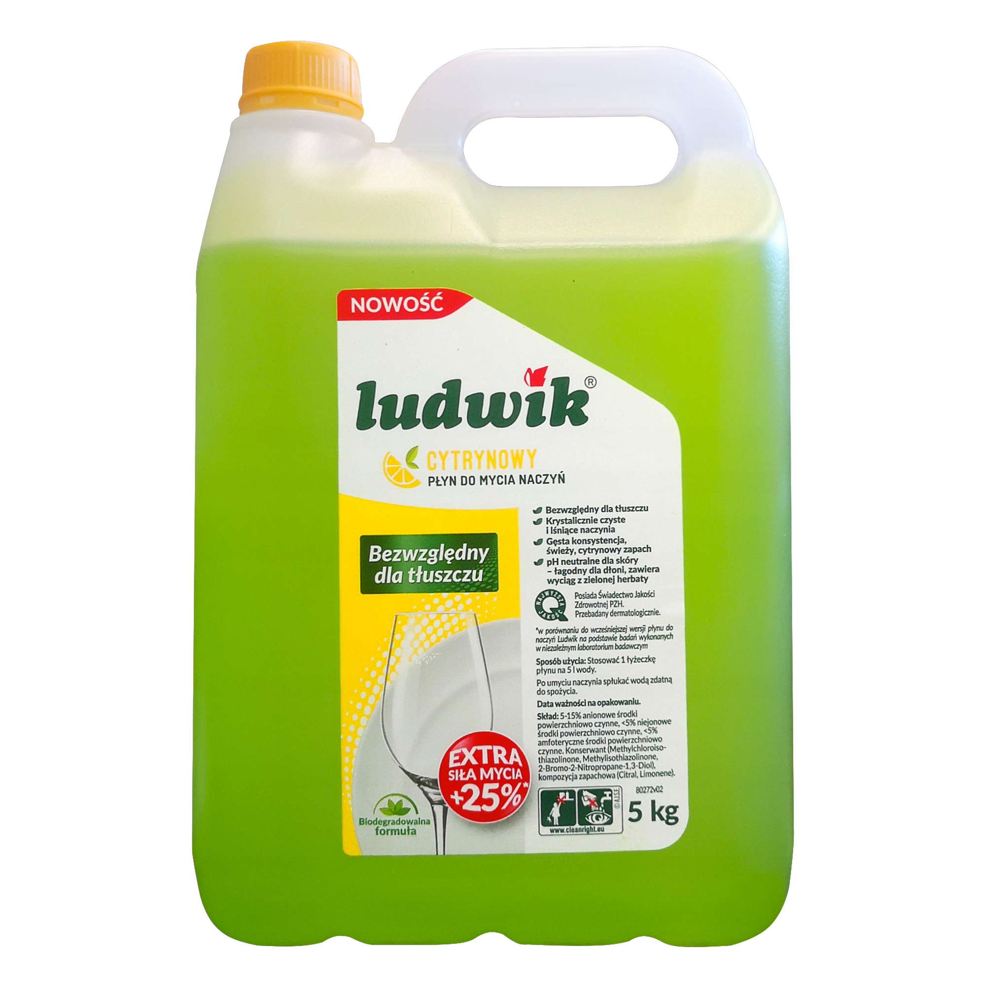 Засіб для миття посуду Ludwik має дуже хороші миючі властивості та високу здатність емульгувати жири. Ludwik можна використовувати для миття посуду як у теплій, так і в холодній воді.