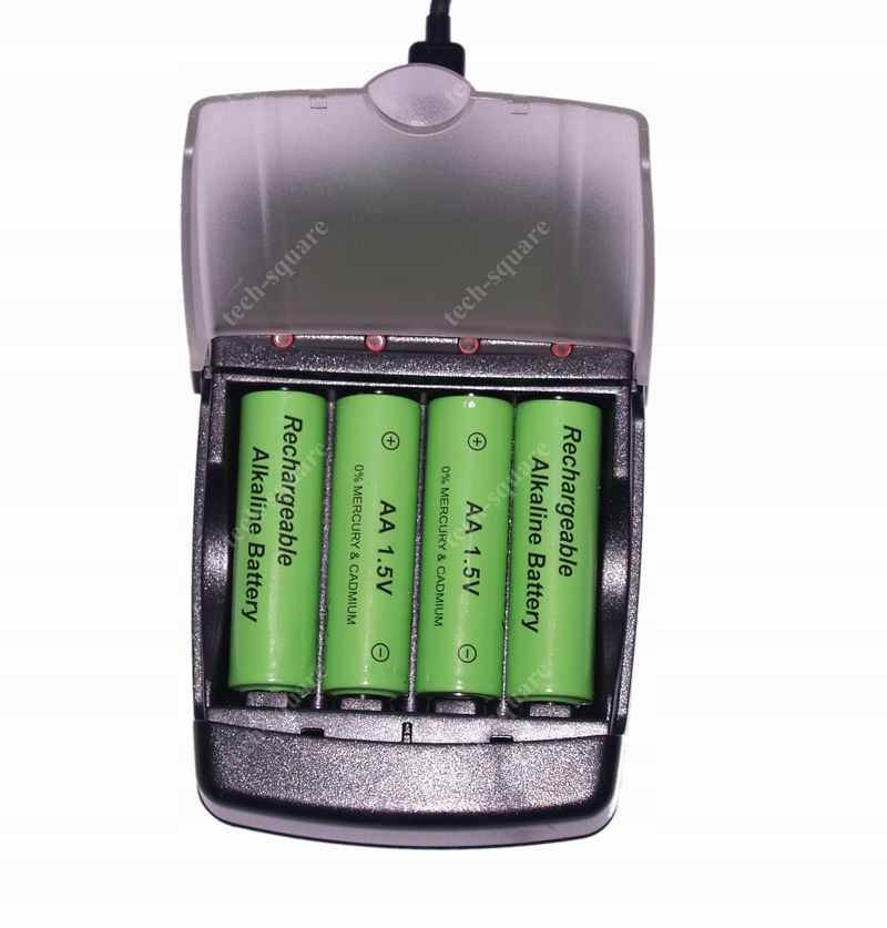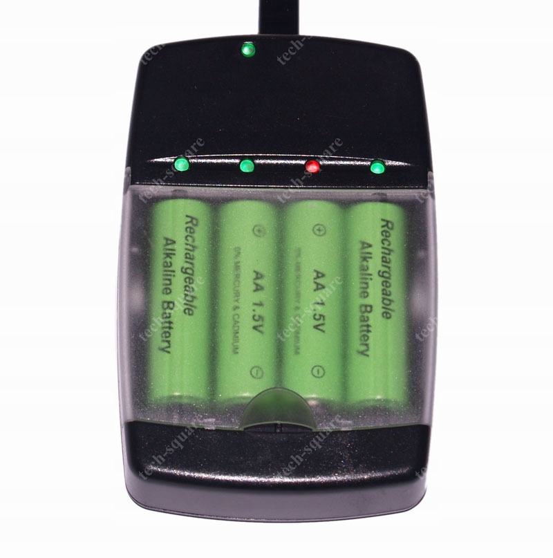 Автоматичний вибір струму зарядки для лужного акумулятора AA або AAA. Зарядка: