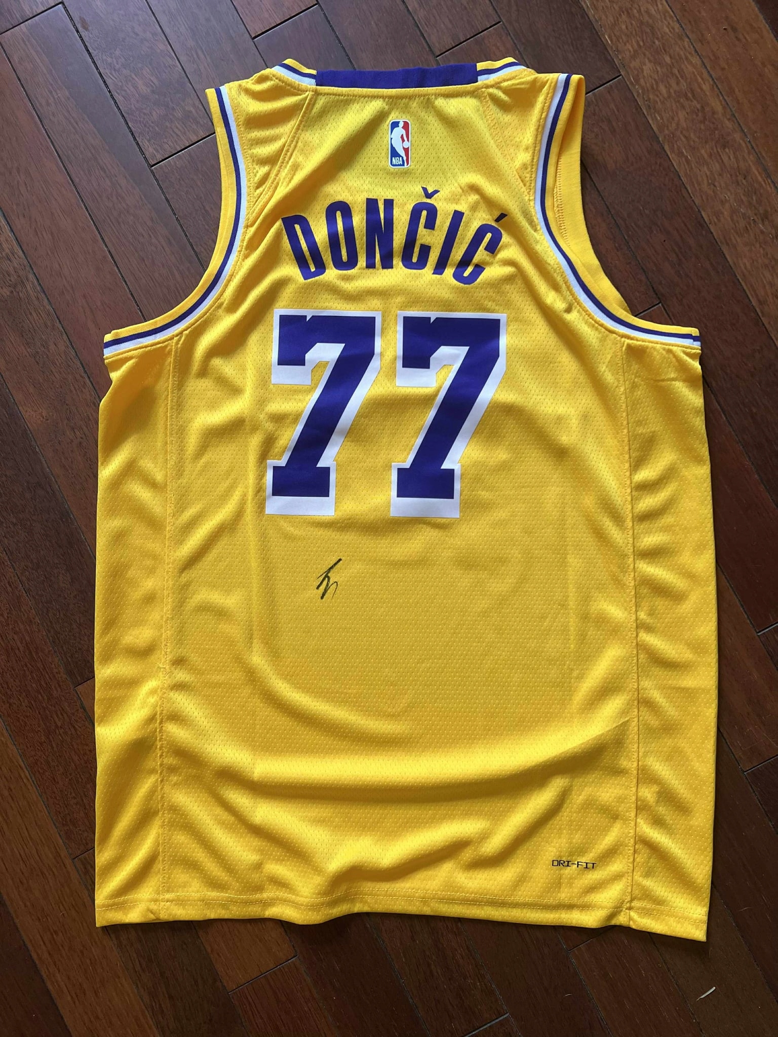 t -сорочки з номером 77 Лос -Анджелес Лейкерс з автографом Doncici Luke. Унікальна позиція для шанувальників баскетболу. Включає сертифікат автентичності у вигляді наклейки QR -коду, виданого авторитетною американською компанією.