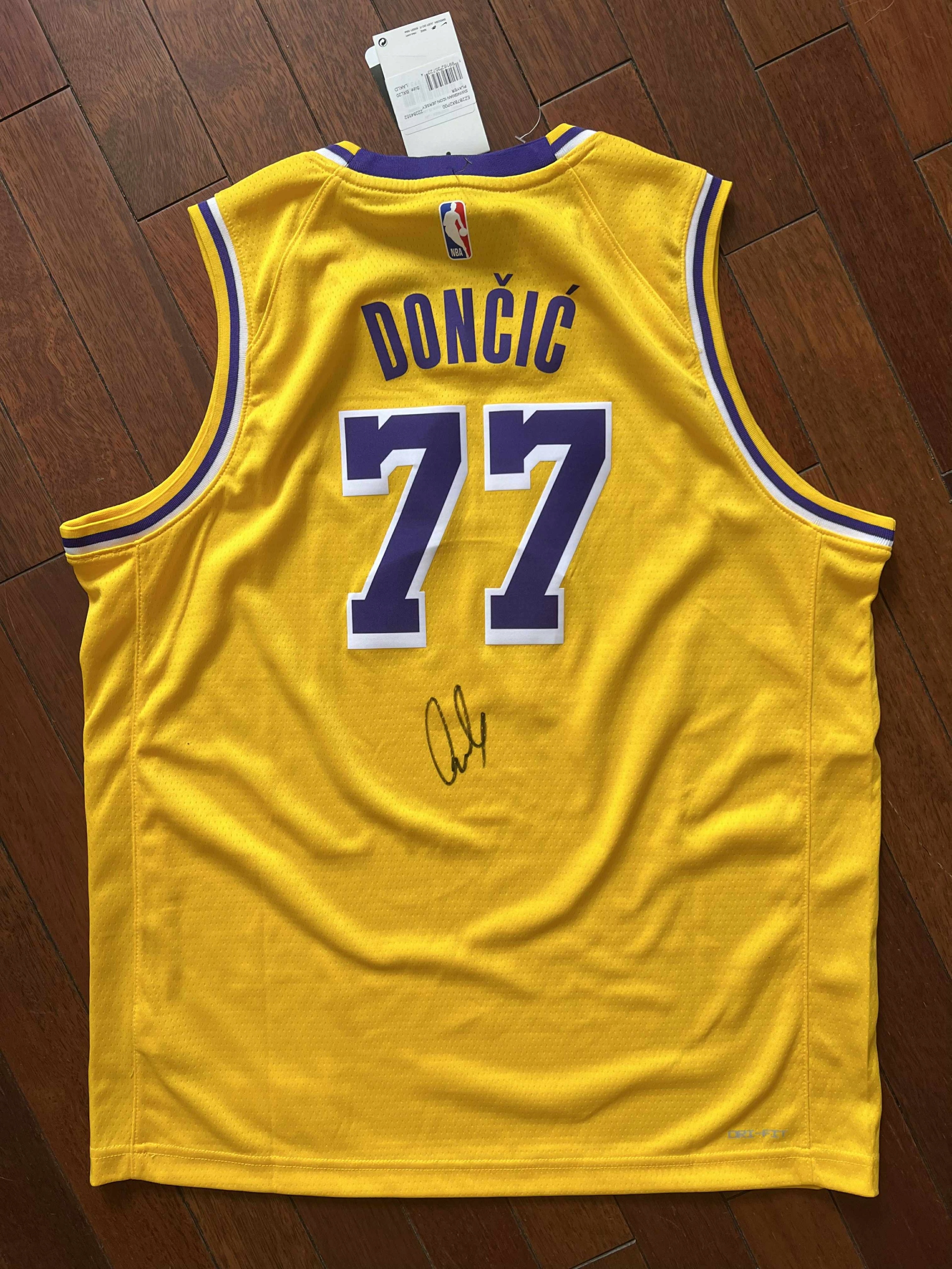 сорочка № 77 Los Angeles Lakers з автографом Донцика Лука. Унікальна позиція для шанувальників баскетболу. Включає сертифікат автентичності у вигляді наклейки QR -коду, виданого авторитетною американською компанією.