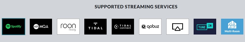 - Внутрішня підтримка TIDAL, Qobuz, Spotify і AirPlay, що забезпечує доступ до десятки мільйонів пісень