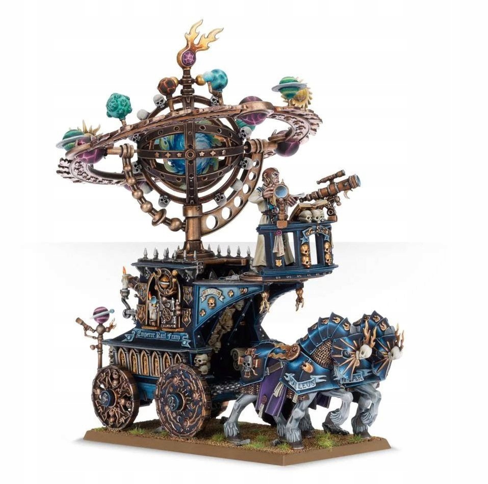 Celestial Hurricanum — це величний і неймовірно вражаючий набір, який виділявся б у будь-якій колекції Warhammer Age of Sigmar. Досконала карета нагадує релікварій із вишуканою готичною аркою та мотивами черепа та вкрита астрологічними символами. Карета несе вгорі оглядовий майданчик із зображенням черепів і телескопів, на якому стоїть бойовий маг, оточений таємничими інструментами. Він стоїть у тіні величезного оррері, який діє як осередок чаклунської сили та може викликати жахливі магічні бурі. Цю величезну штуковину тягнуть двоє коней, одягнених у блискучі обладунки.