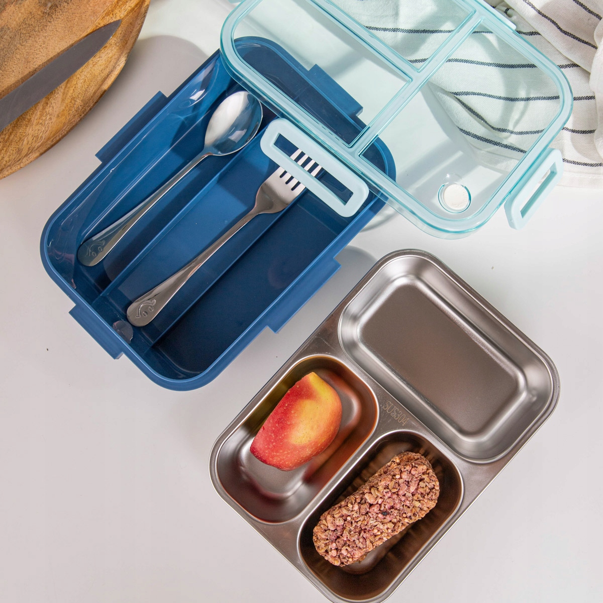 Delvor Delvor - це практичне рішення для їжі для роботи, школи чи університету. У наборі ви знайдете базовий контейнер з трьома відсіками, щільною кришкою та столовими приладами. Lunchbox може легко поміститися в сумку або рюкзак.