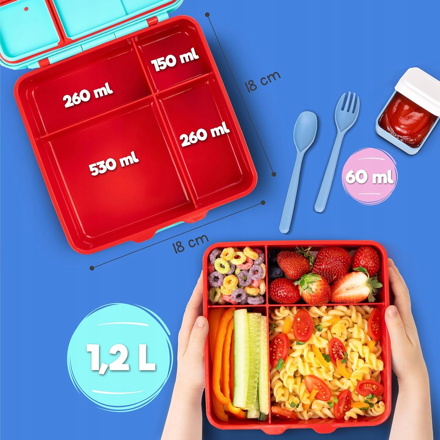 Відсіки в обідній коробці дозволяють розділити страву на різні інгредієнти - фрукти, овочі, закуски або бутерброди. Завдяки барвистим мотивам та привабливому зовнішньому вигляді діти частіше їдять здорову їжу - навіть ті, хто менш любив овочі!