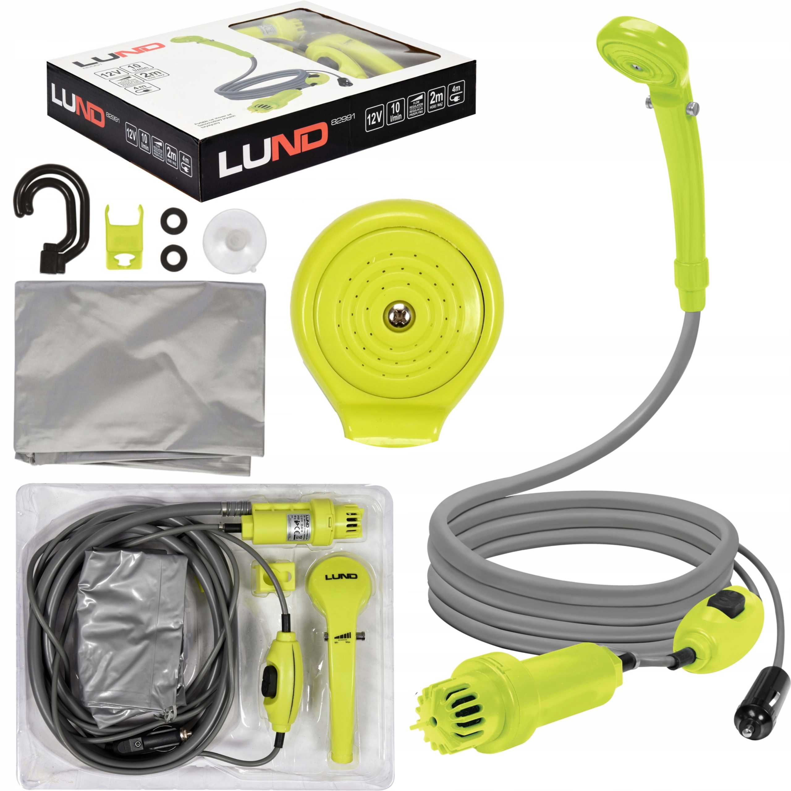 портативний душ, оснащений електричним насосом. Корисно в кемпінгу, кемпінгу та місцях без доступу до ванної. Дво 2 -метровий шланг і шнур живлення 4 м забезпечать великий діапазон роботи.