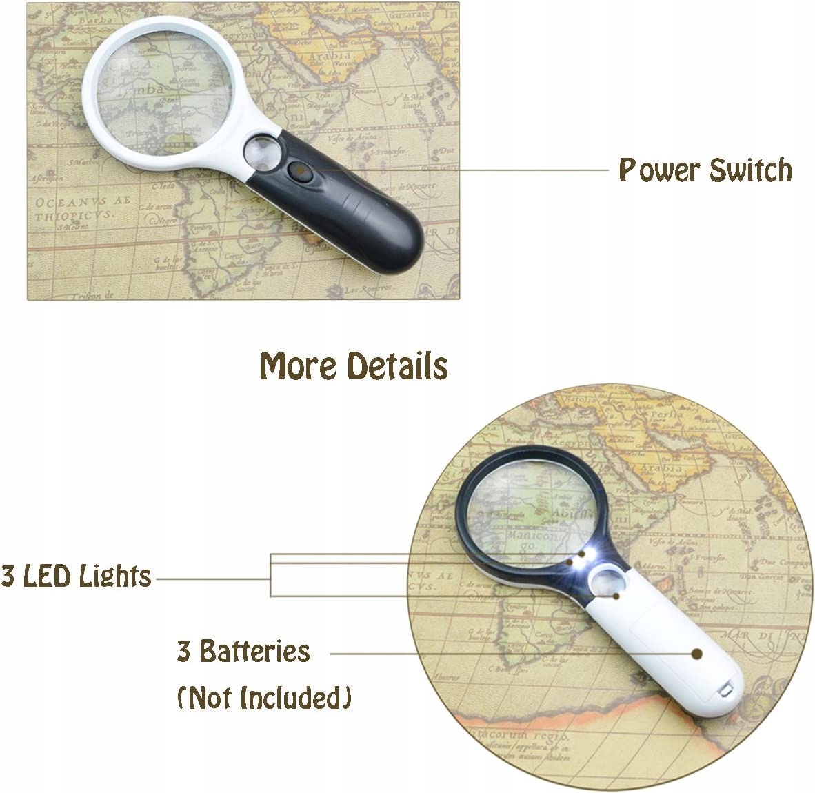 Збільшувальне скло зі світлодіодним + ультрафіолетовим підсвічуванням, ідеально підходить для читання книг, газет, карт.