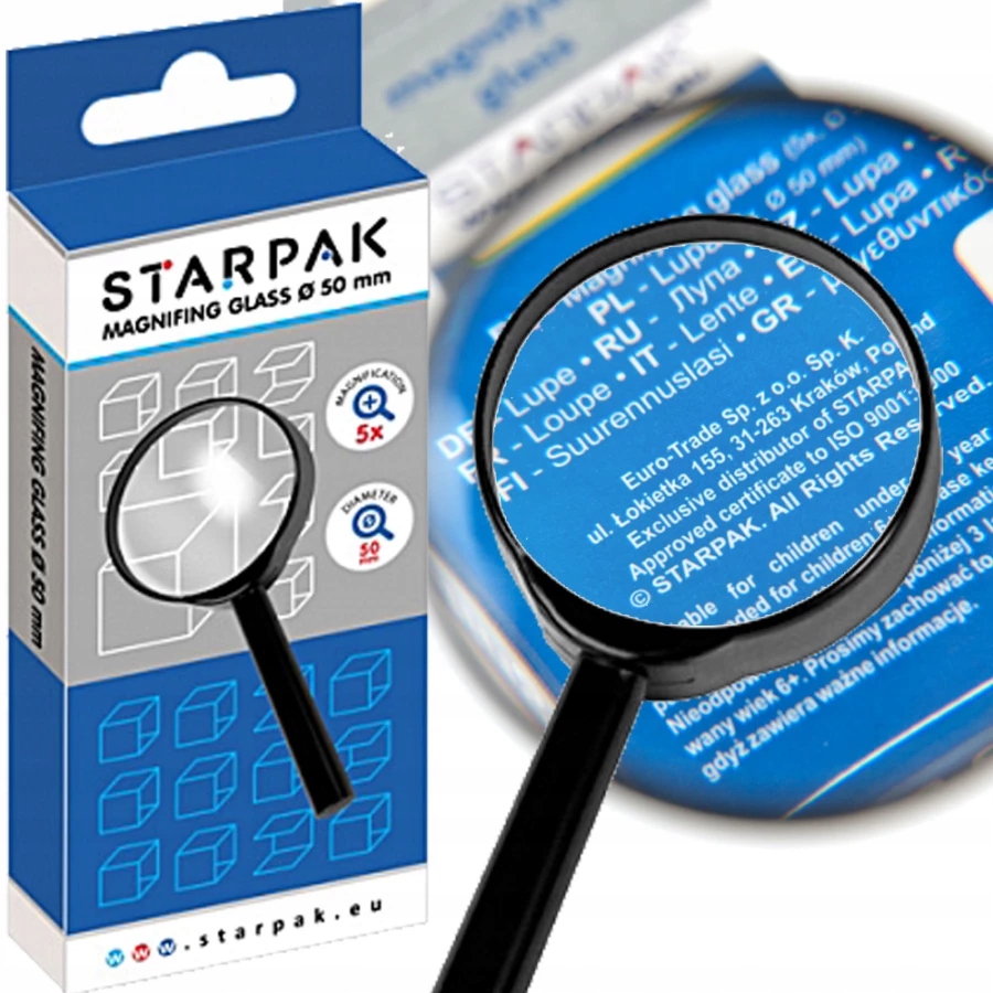 Збільшувальна лупа Starpak у міцній оправі, стійкій до подряпин і пошкоджень скла.