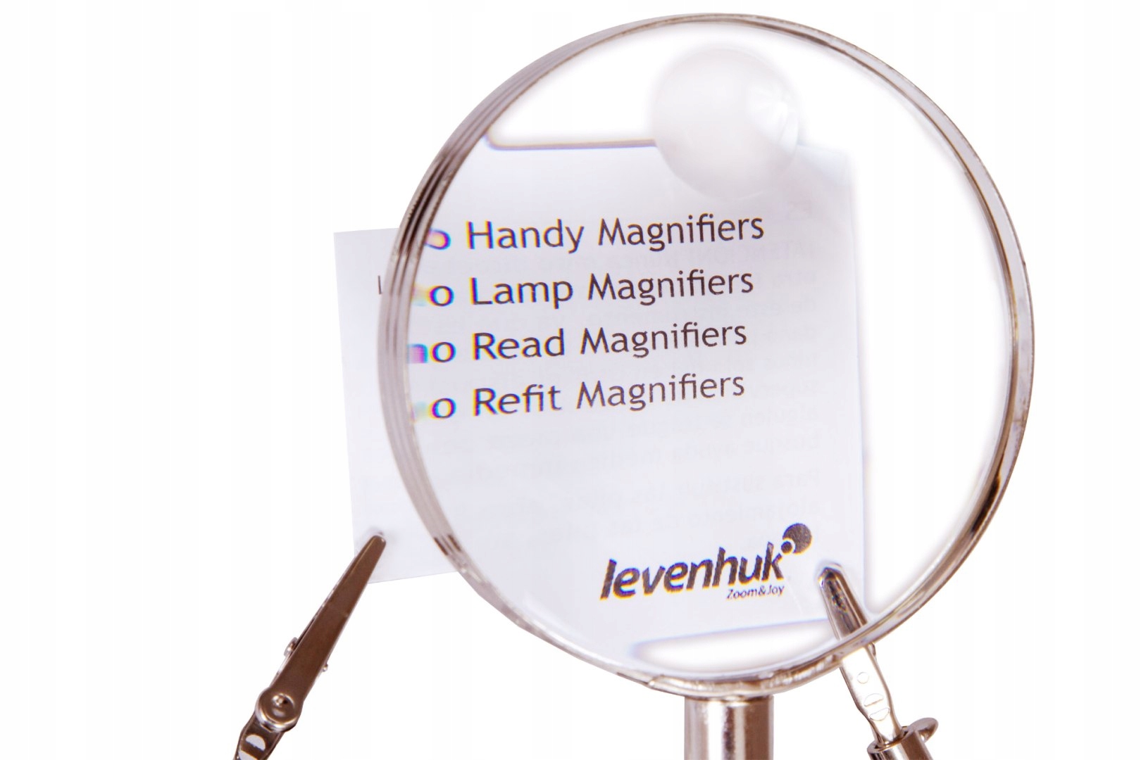 Лінза виготовлена з полімерного оптичного скла і забезпечує чітке та детальне зображення. об’єкта, що збільшується. Його міцний металевий корпус гарантує стабільність і високу міцність. Усі лупи цієї серії мають ручки з допоміжними затискачами для надійного кріплення предметів.
