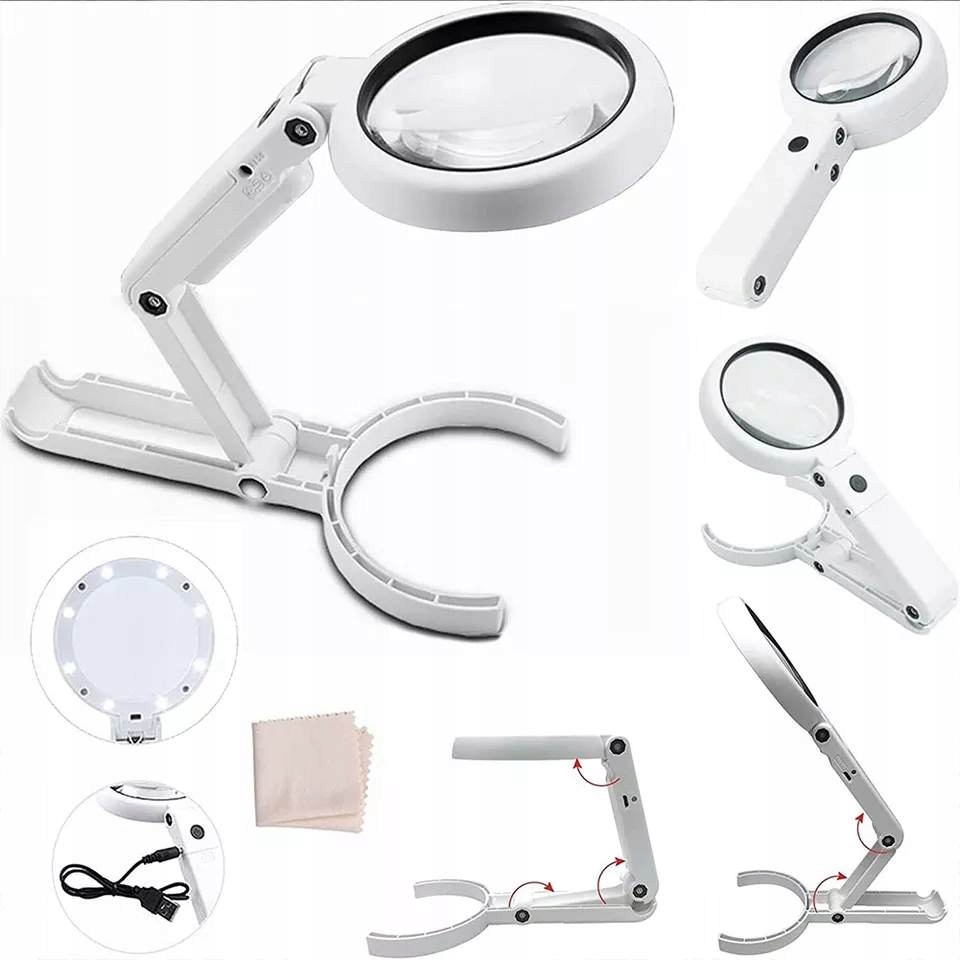 ПОРТАТИВНА СКЛАДНА ЗБІЛЬШУВАЛЬНА ПІДСВІЧУВАННЯ 8LED USB-