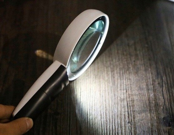 Офісна лупа зі скляною лінзою, діаметром 85 мм, оптичною оптикою приблизно х10. Оснащений підсвічуванням 3-діодною ширококутною світлодіодною лампою. Це дозволяє легко читати дрібний шрифт у документах. Допомагає людям із вадами зору читати газети та книги.