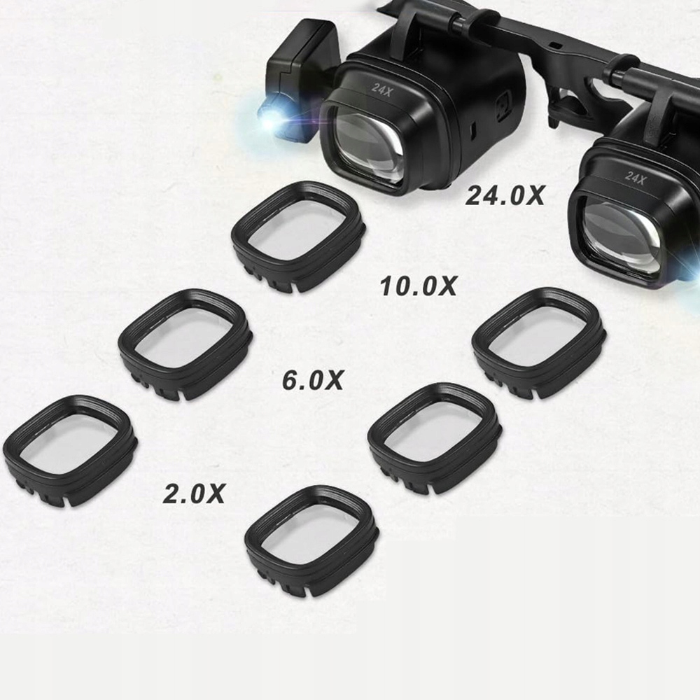 ТОЧНІ ОКЛИ ЗБІЛЬШУВАННЯ ГОЛОВИ Світлодіодні лупи 2x, 6x, 10x та 24x