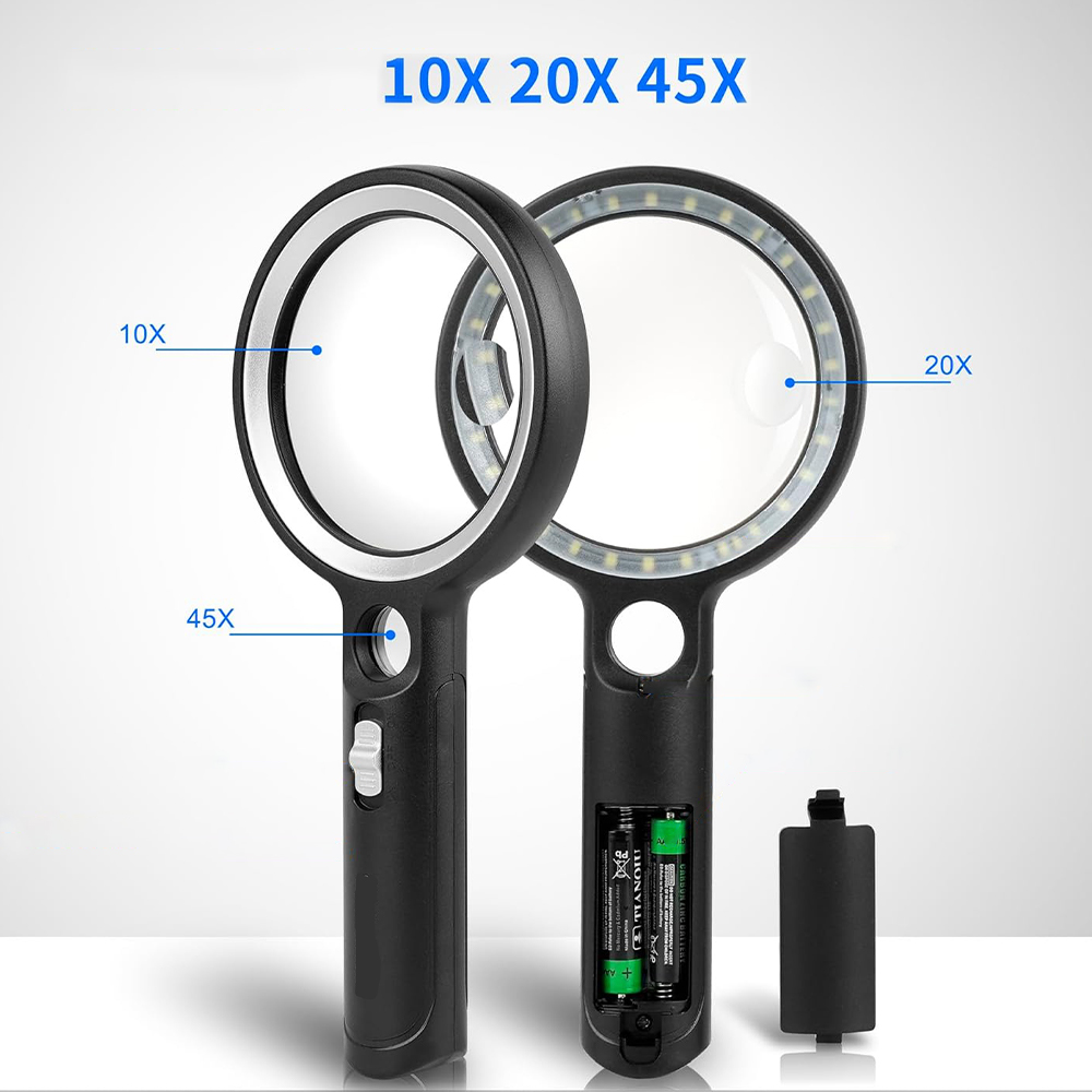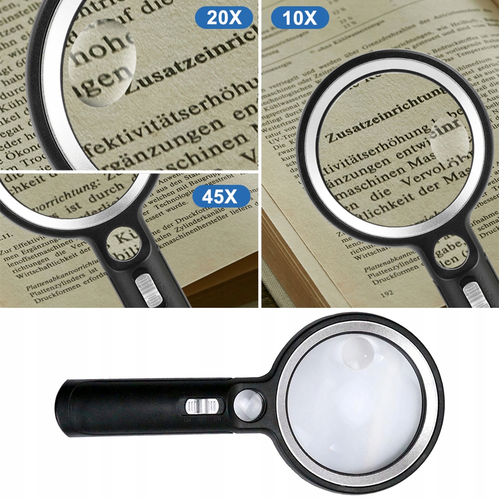 РУЧНЕ ЗБІЛЬШУВАЛЬНЕ ЗБІЛЬШУВАЛЬНЕ СКЛО ДЛЯ ЛІТНІХ 10X 20X 45X ЗІ СВІТОДІОДОМ