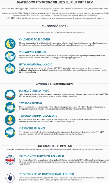 Якщо мова йде про вашу дитину, ви зосереджуєтесь на найвищому якості. Ось чому преміум -підгузники Lupil були перевірені Німецьким інститутом дерматест.