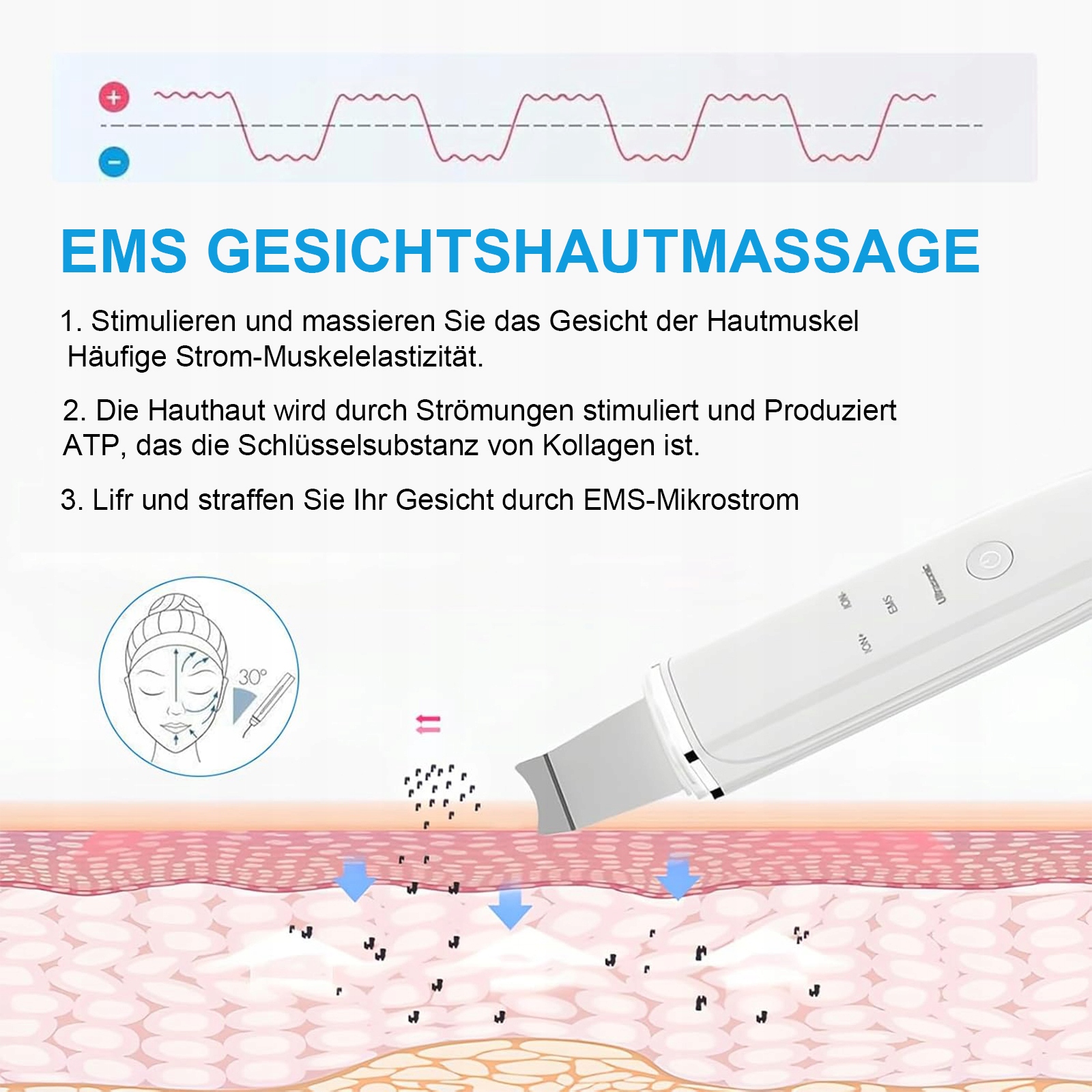 👊 догляд за обличчям 4 в 1: знову уявіть свою шкіряну рутину. Він містить чотири потужні режими, щоб націлитись на будь-яку необхідність догляду за : іон+ для глибокого поглинання поживних речовин, іонів- до обережно відволікають бруд, ЕМС для стимулювання м'язів обличчя та ультразвуку для ретельного очищення. незалежно від того, чи боретесь ви до вугрів, ви підтягуєте порей або збільшуєте шкіру шкіри. рутина з спа -центром