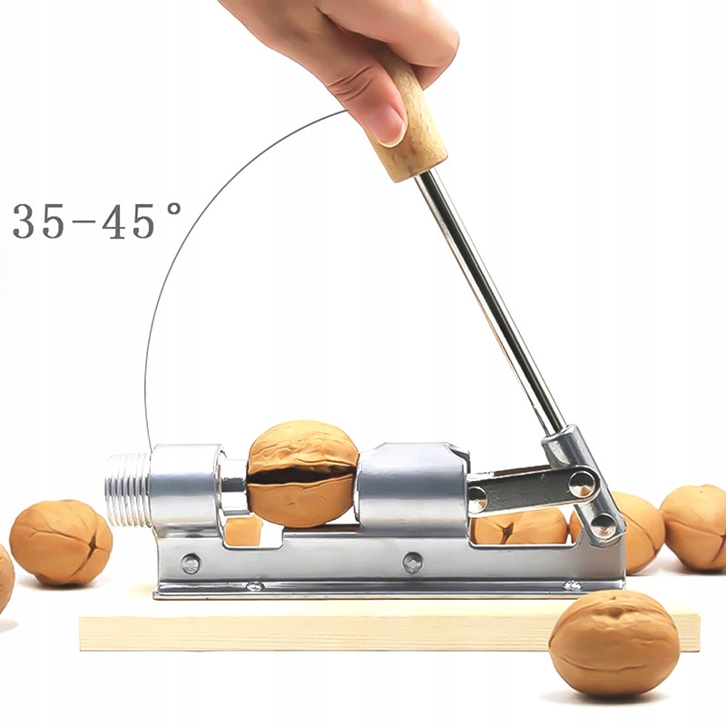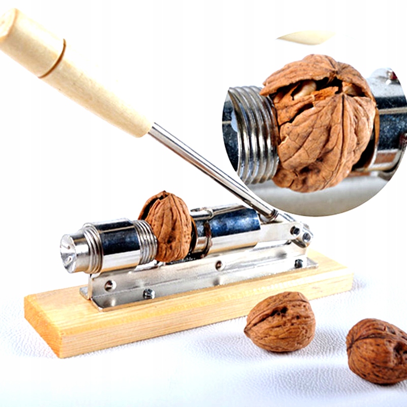 Лускунчик з нержавіючої сталі, прикріплений до дерев'яної основи. Він розроблений для того, щоб подрібнити горіхи з м’якою шкаралупою швидше та легше, ніж будь-який інший засіб для збивання горіхів. Унікальна конструкція дозволяє міцно затиснути гайку. Забезпечує більшу міцність і створює чистіші, більші шматки целюлози.