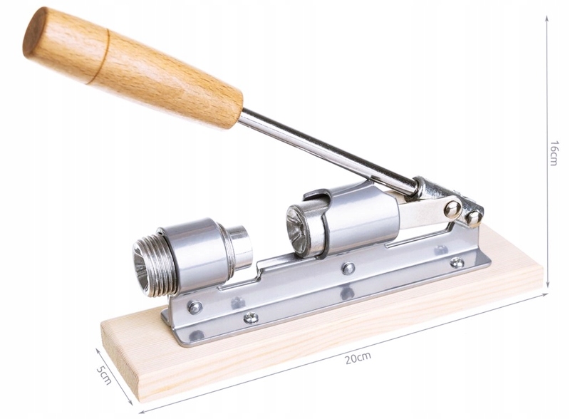 - ДЕРЕВ'ЯНА ПІДСТАВКА – b> Вся металева конструкція горіхорозкривача розміщена на міцній дерев'яній основі, яка не тільки добре та стійко стоїть на стільниці, але й легко підтримується в чистоті та міцний.