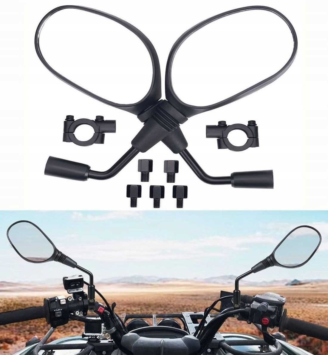 Дзеркала Універсальні Мотоцикл Quad Самокат М8 / М10 Адаптери Хомути Комплект