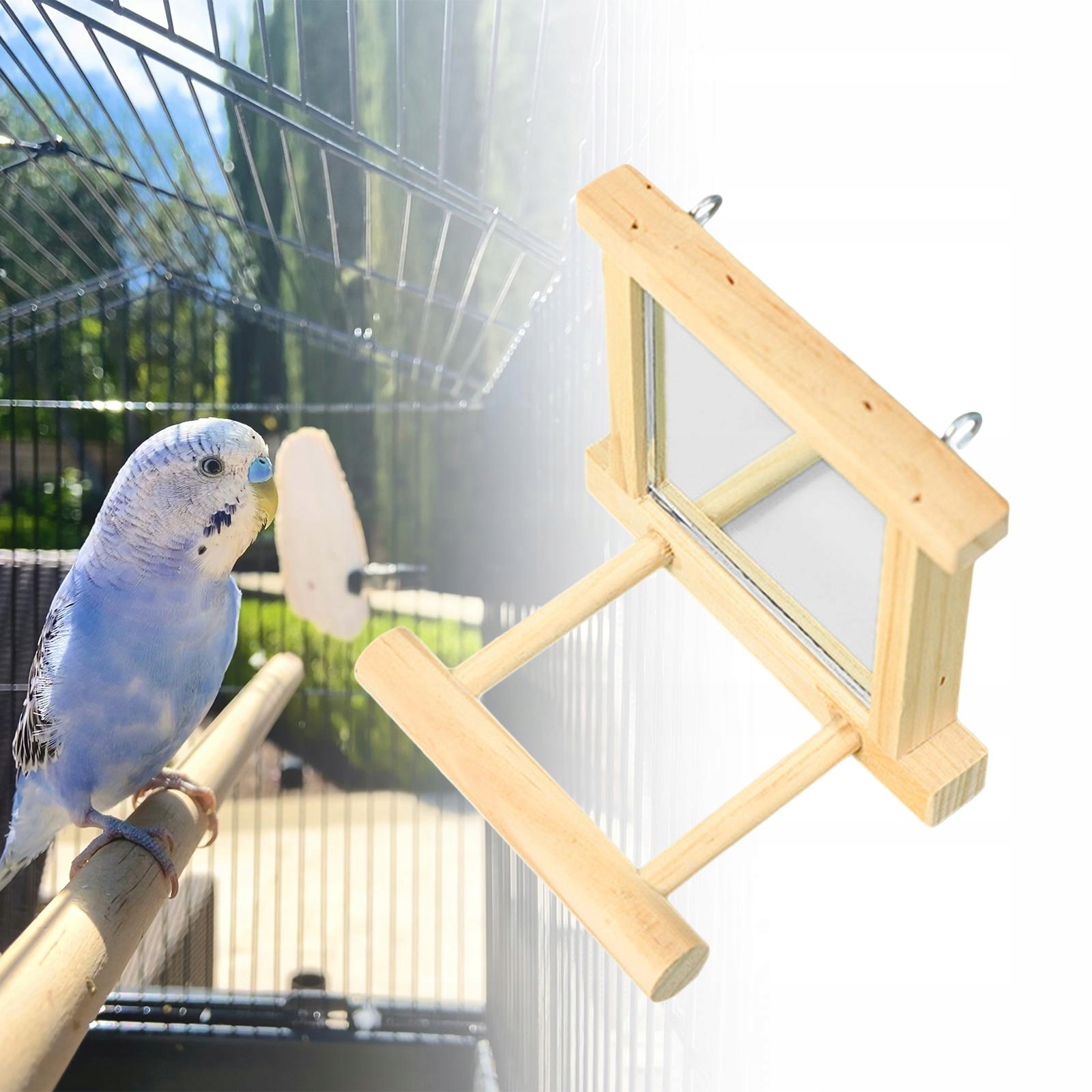 Lusterko dla papugi dla ptaków w klatce Koliber. Grzędy dla zięby nierozłączki