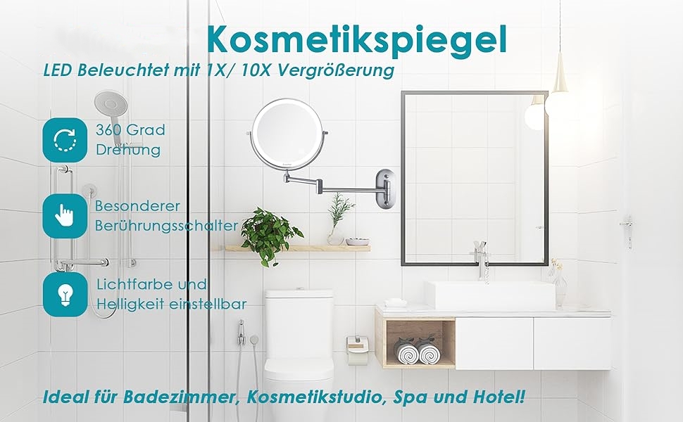 4. 💝【Обертання на 360° і складна конструкція】 Дзеркало для макіяжу з підсвічуванням кріпиться на стіні та оснащене висувним кронштейном. Вільне обертання на 360 градусів забезпечує комфортний кут огляду під час нанесення макіяжу, гоління або носіння контактних лінз. Його можна скласти до стіни, коли він не використовується, щоб заощадити місце.
