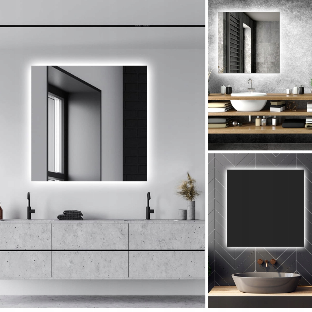 СВІТЛОДІОДНЕ ДЗЕРКАЛО 60x60 см LED ПІДСВІТЛЕННЯ ДЛЯ ВАННОЇ СУЧАСНА ФРЕЗІЯ
