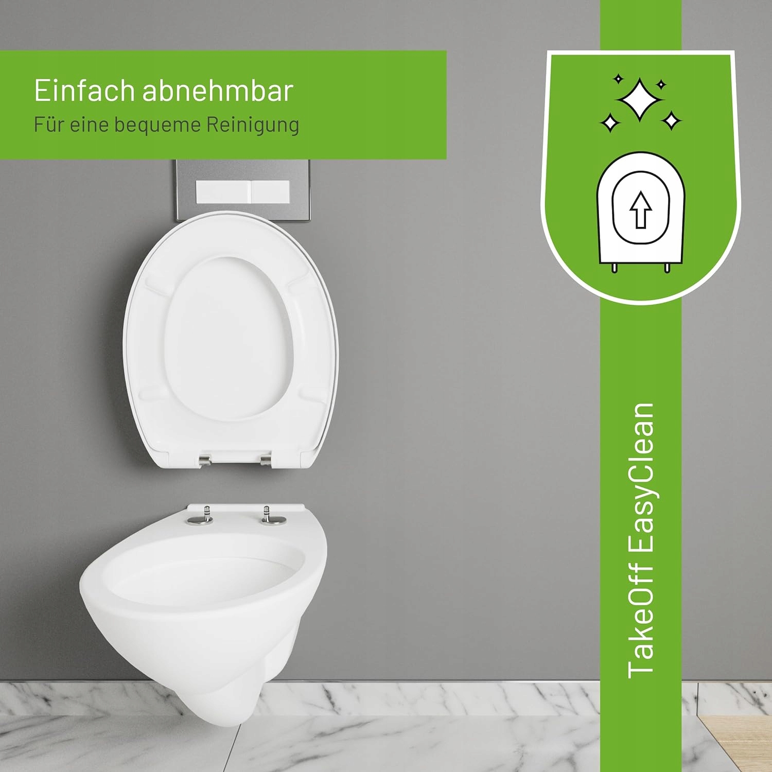 - Функція знімання TakeOff EasyClean – простий спосіб зняти керамічне сидіння унітазу для зручного чищення одним рухом.
