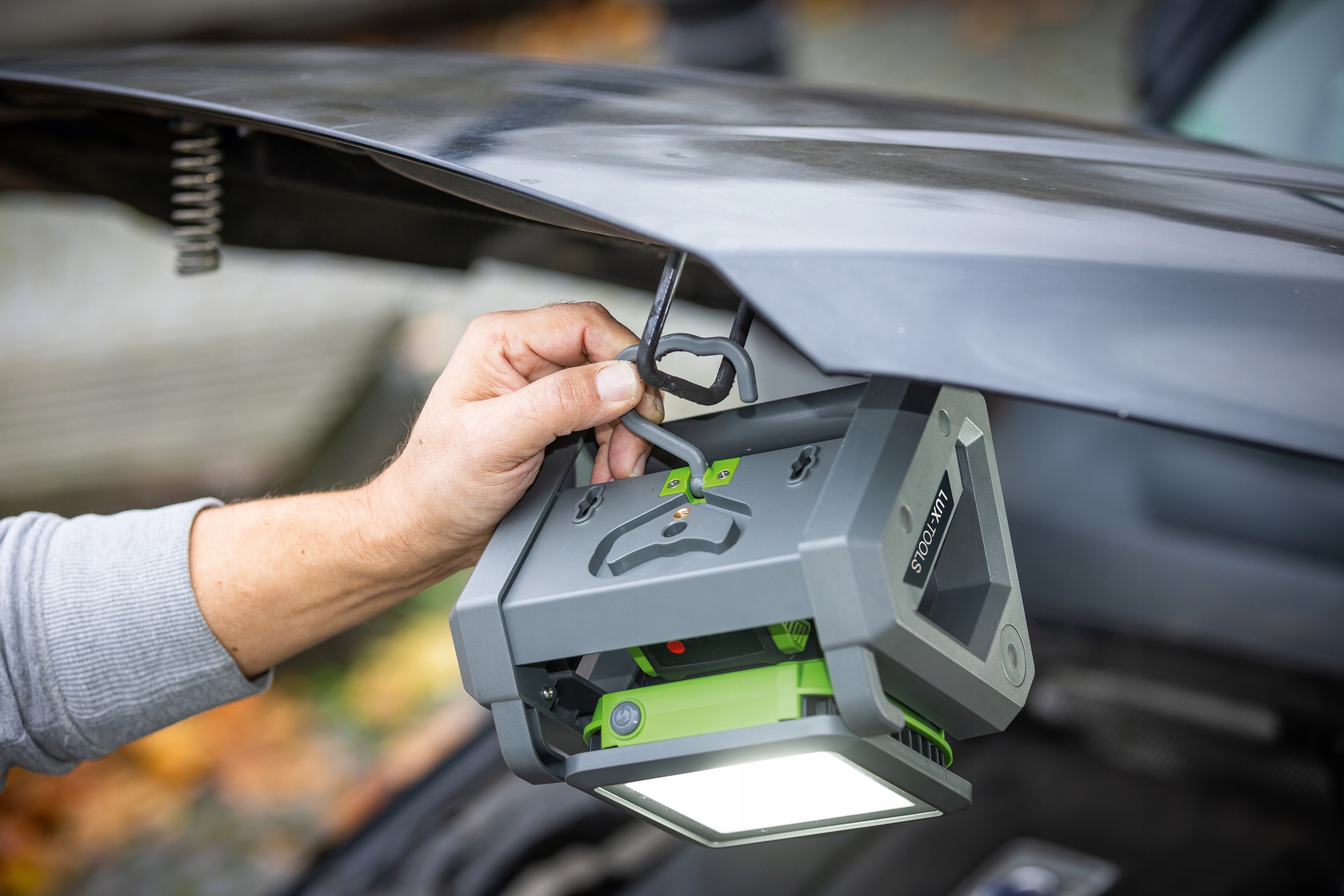 Бездротова робоча лампа ідеально підходить для майстерні, під час ремонту або роботи на автомобілі.