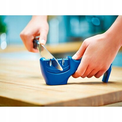 Практичний інструмент, призначений для посилення всіх типових ножів, що використовуються в домашньому господарстві, включаючи ножі з керамічним лезом. Оснащений комфортною ручкою, гарантуючи певне зчеплення та підвищення безпеки використання.