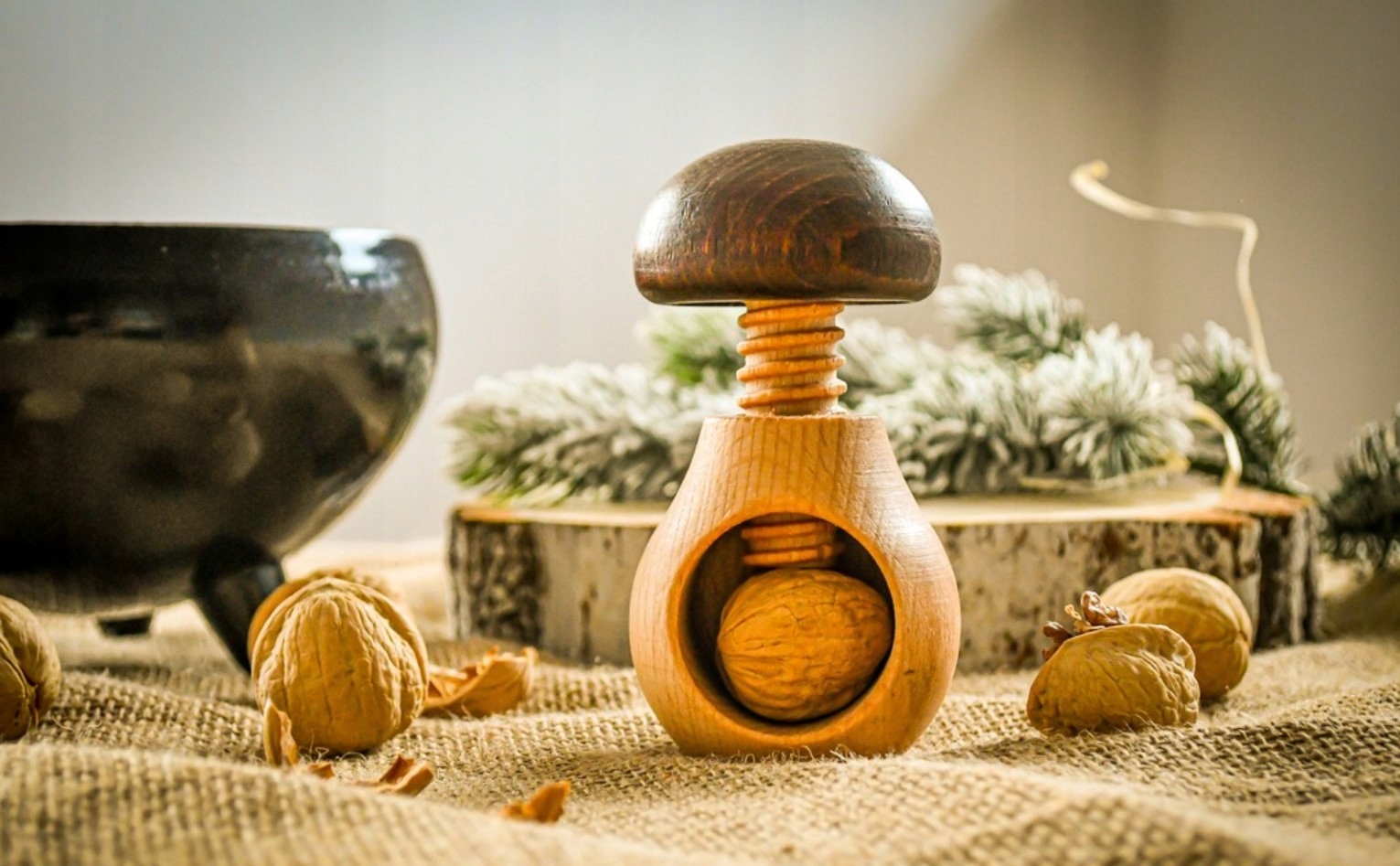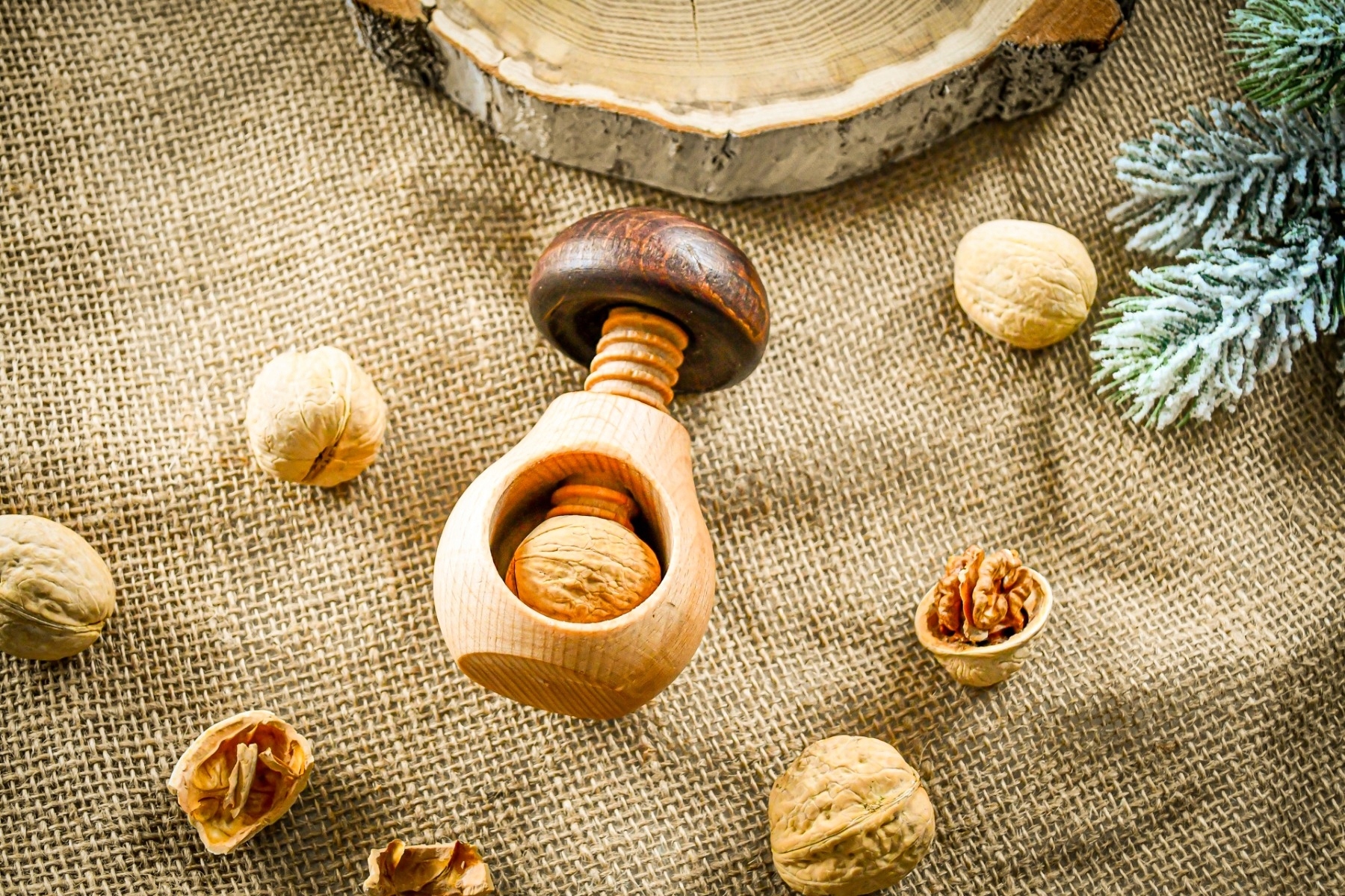 ▶️Відкрийте для себе чарівність традицій у сучасному відтінку! Цей незвичайний дерев'яний горіхокол у формі гриба - це не тільки практичний кухонний інструмент, а й маленький витвір рукоділля. Виготовлений з натурального дерева, він радує своєю простотою, міцністю та теплом природи.