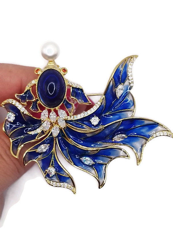 Luxus Broooch підвіска риба Золото забруднена ігри 14K GP + подарункова коробка
