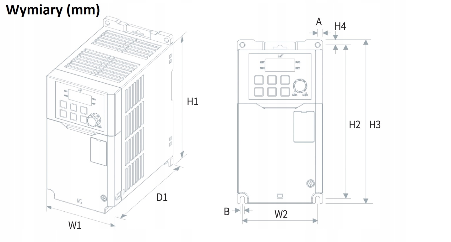 Перетворювач частоти серії LSIS G100. Живлення 3x400V AC, вихід 3x400V AC. Вбудовано: фільтр EMC C3, світлодіодна клавіатура, потенціометр, гальмівний модуль. Корпус IP20 Безсенсорне векторне керування, постійний і змінний крутний момент. Установка поруч, монтаж на DIN-рейку до 4 кВт. Зв'язок Modbus RTU/RS485. Потужність для навантажень зі змінним крутним моментом (робочий режим у важких умовах): 1,5 кВт (струм 2,1 A) - здатність до перевантаження 150% протягом 60 с Потужність для навантажень зі змінним моментом (робочий режим у нормальному режимі): 2,2 кВт (струм 2,8 A) - здатність до перевантаження 120 % протягом 60-х років.