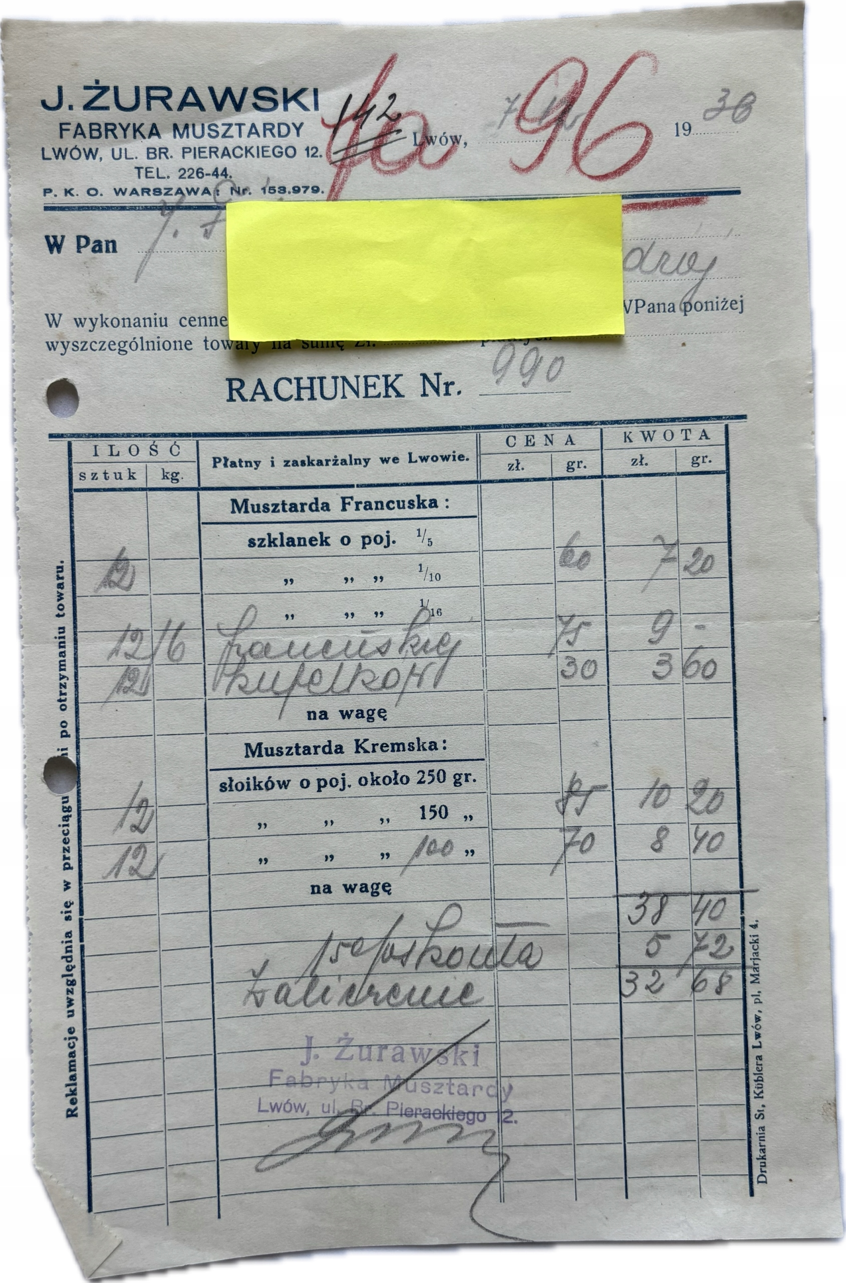 РАХУНОК ГІРЧИЧНОЇ ФАБРИКИ ЛЬВОВА ЖУРАВСЬКОГО