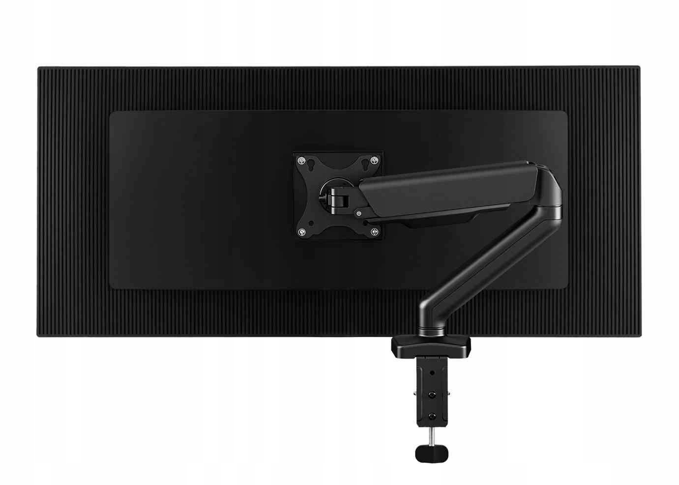 -це повна ручка з газовою пружиною для прикріплення монітора з системою VESA, що є ідеальним рішенням для людей, які цінують вільний простір на своєму столі та точне узгодження положення монітора до своїх переваг.