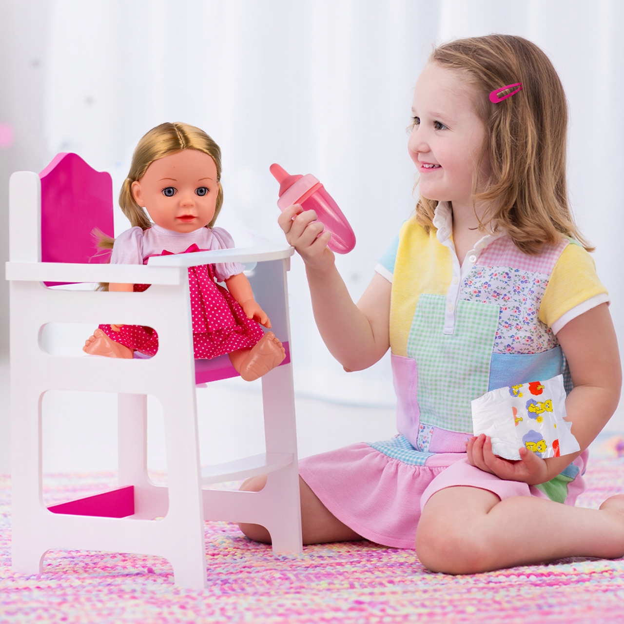Завдяки доданим аксесуарам, таким як пляшечка, набір для годування або горщик, діти вчаться доглядати за лялькою. Це чудовий спосіб розвинути емпатію та соціальні навички, які надзвичайно важливі у дорослому житті.
