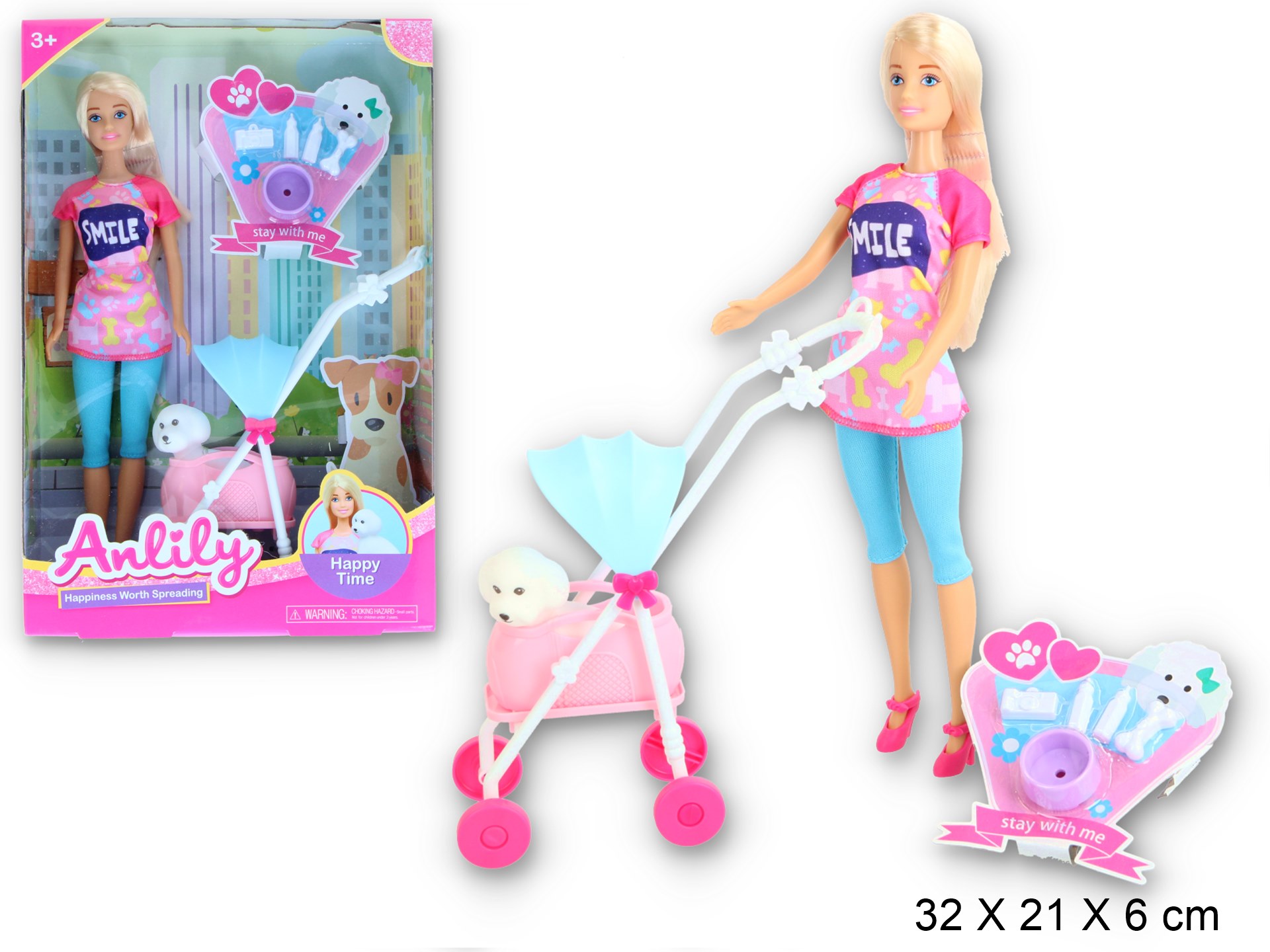 Красива лялька Anlily з собачкою в спеціальній колясці та аксесуарах - чудова іграшка для дівчаток, які люблять тварин, особливо собак, і активно проводять з ними час на свіжому повітрі.