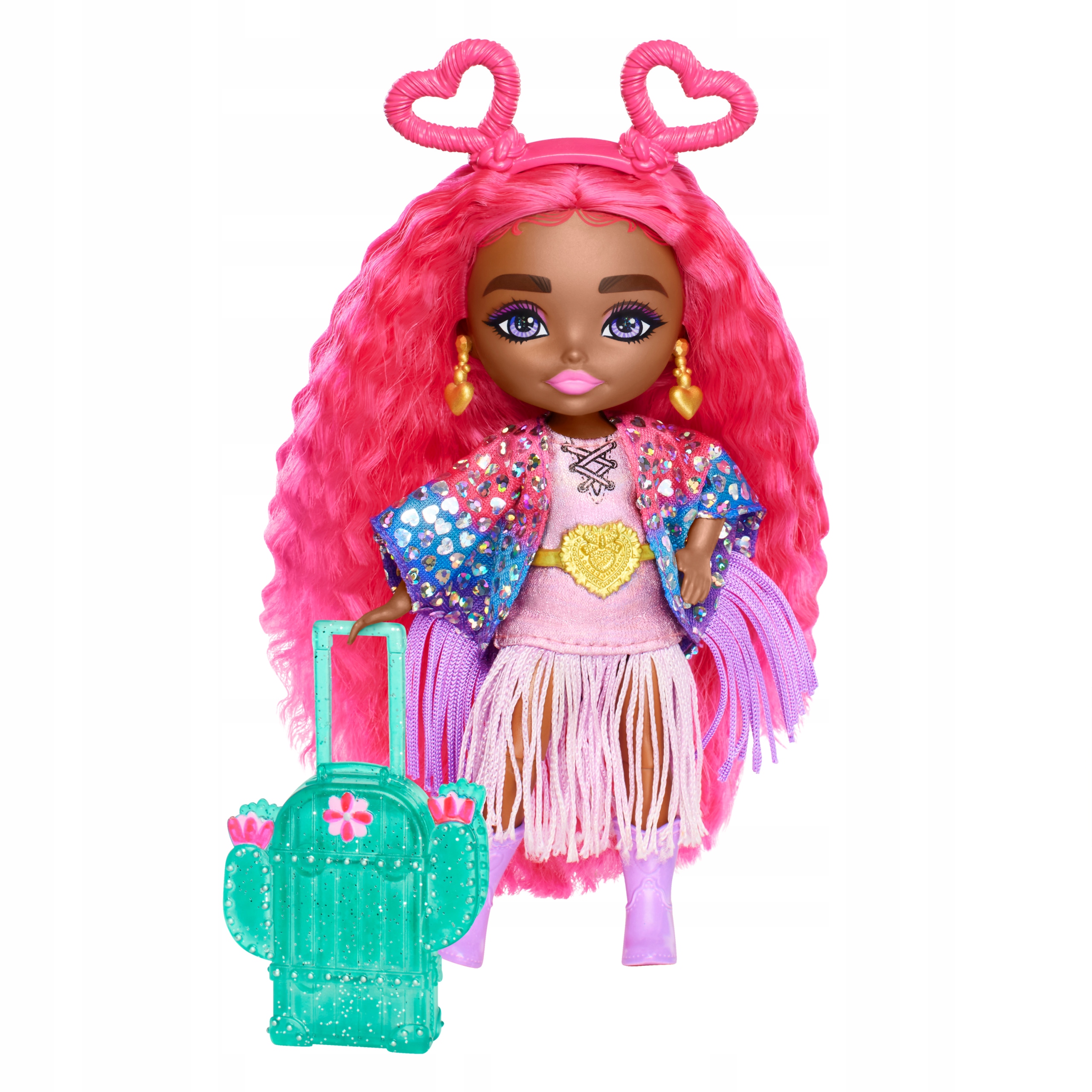 З наддовгим рожевим волоссям ця лялька Barbie® Extra Minis™ готова відправитися на музичний фестиваль пустелі в блискучій накидці з бахромою та металева сукня з бахромою.