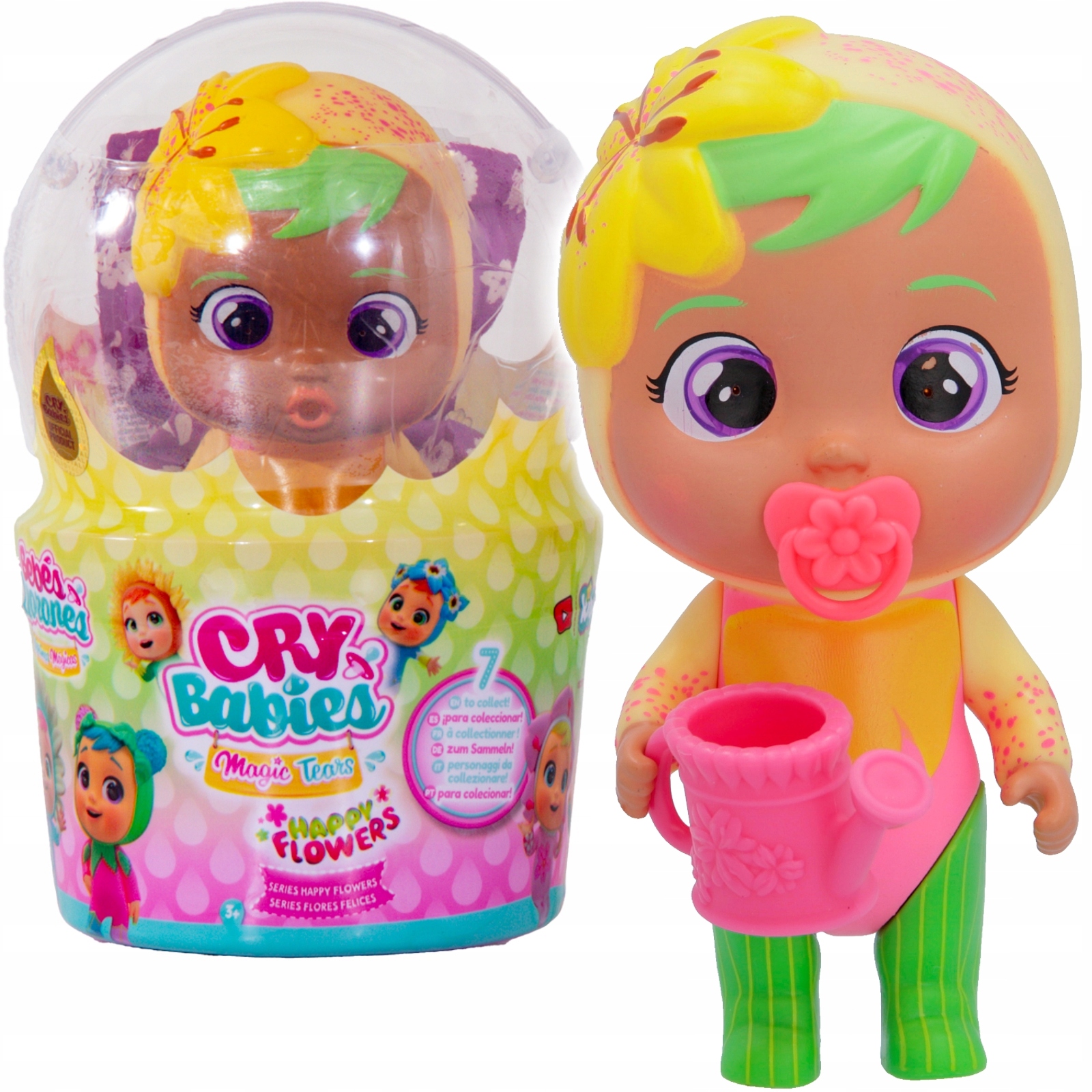 Познайомтеся з новою версією ваших улюблених героїв Cry Babies Magic Tears – серії Happy Flowers! Є 7 різних ляльок, які можна зібрати, і завдяки віконній упаковці ви можете вибрати свого улюбленого персонажа.