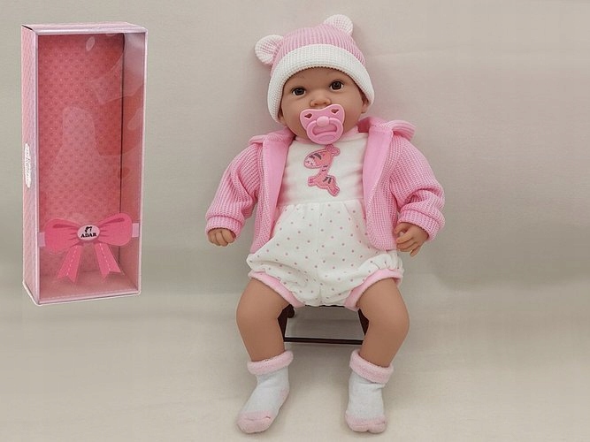 Цей гарний малюк порадує кожну маму. У ляльки дуже гарне, надзвичайно реалістичне обличчя з великими очима та її зріст 45 сантиметрів. Обладнаний звуковим модулем, співає та розмовляє польською. Чудова іграшка для кожної дівчинки, яка любить грати в будиночок, входить у комплект.